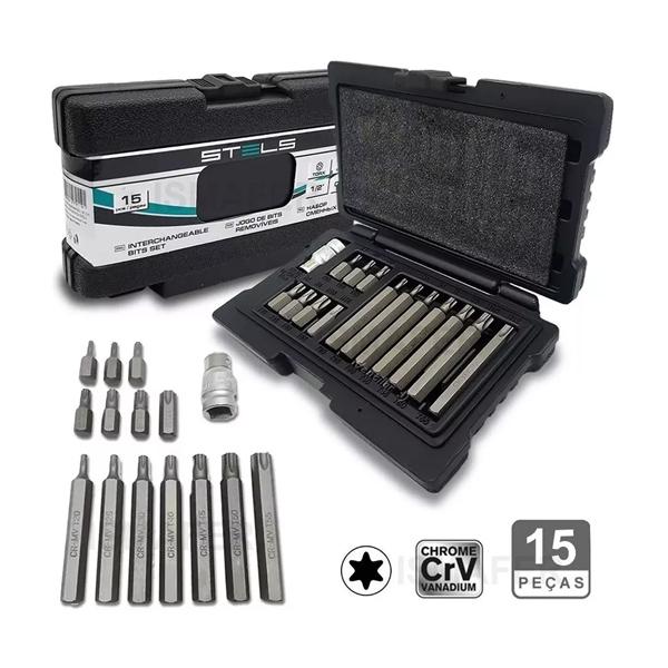Jogo De Bits Torx 15 Peças T20 A T55 Crv 11315 Stels